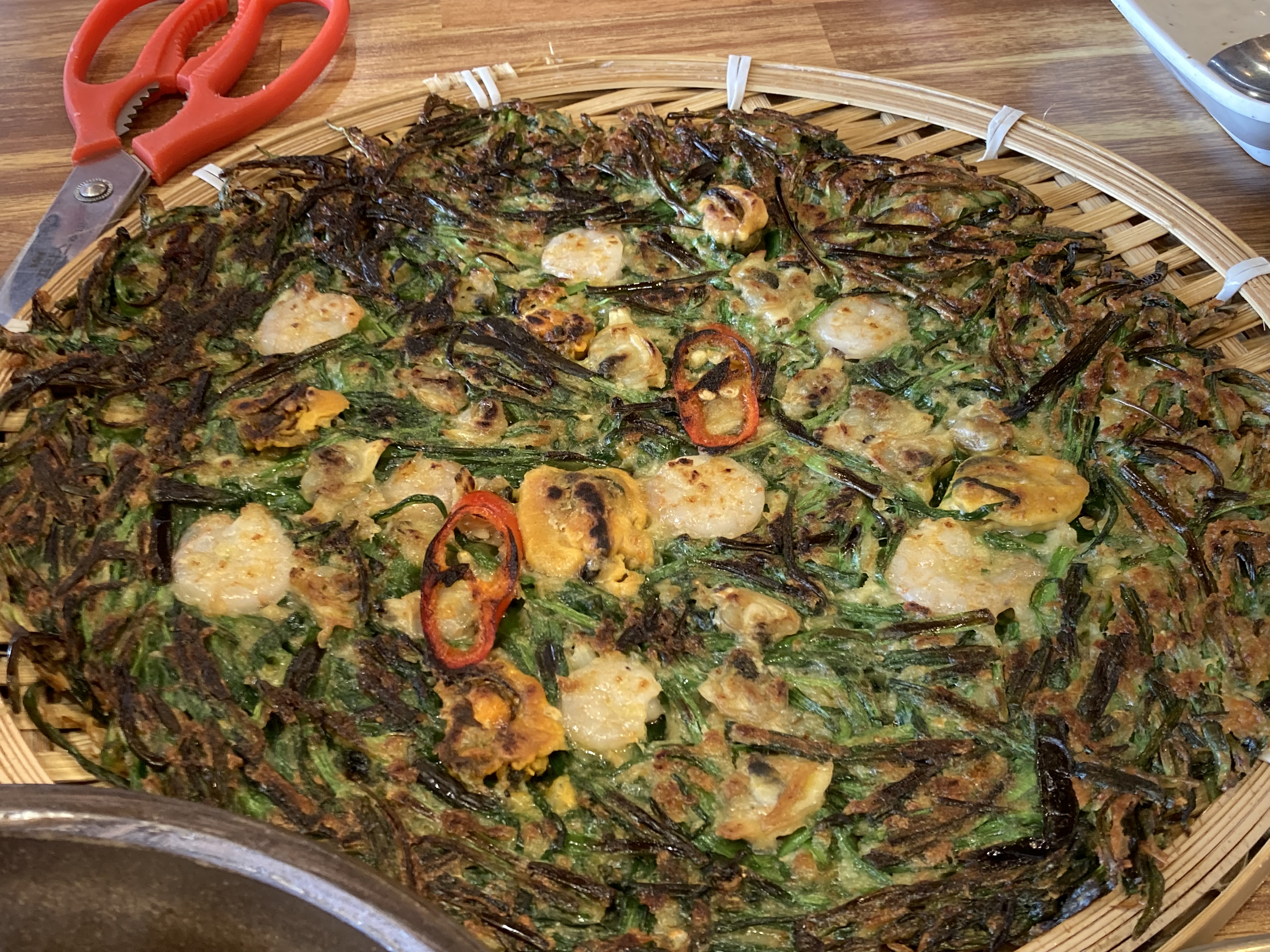 겉이 바삭한 전을 좋아한다면 입맛에 맞을 것이다. 중간에 섞인 청양고추가 기름짐을 잡아준다.
